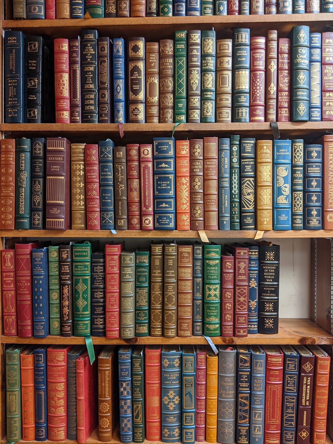 Colorful book covers and bindings somewhere in Europe.